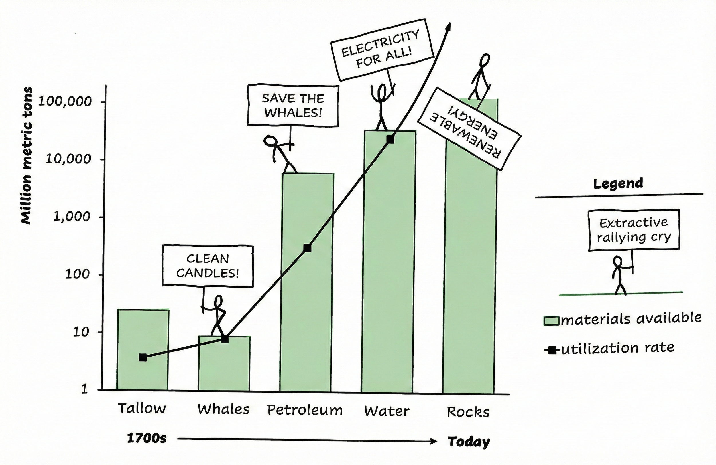 🪨And now all we have left to exploit are the ROCKS. Not as easy as the other stuff to extract and transform, but we will have them too! ... under the banner of clean and renewable energy.