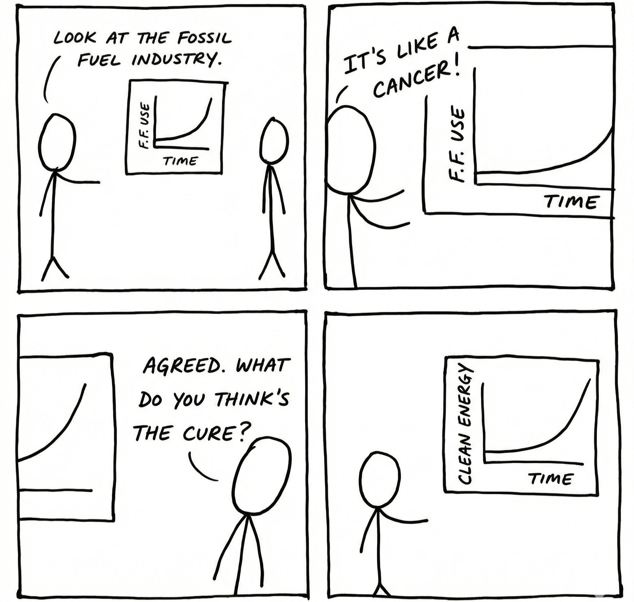 You can't fight environmental disaster growth curves with exponential extractive growth curves. But somehow it's become a best-selling idea.