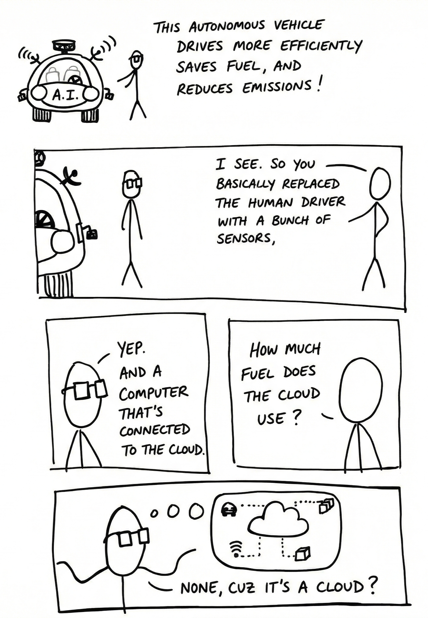 Research in the sustainable transportation sector especially ignores its cyber-physical nature. Perhaps it doesn't help that we've all been sold on the image of data transmission and storage as a "cloud."