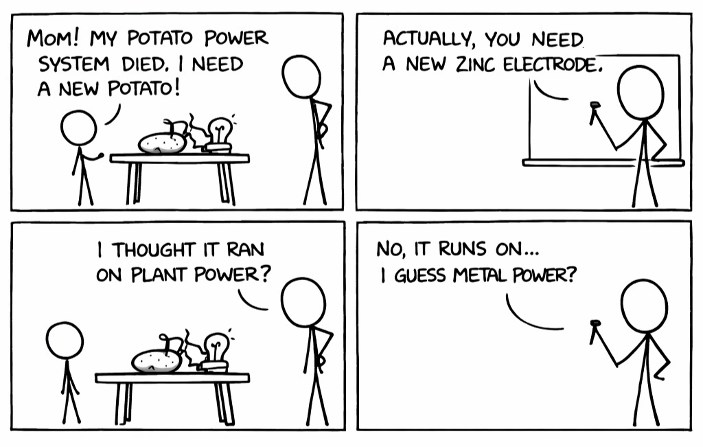 Renewable energy is not simply "clean" or "green" or "carbon free." Its real character is like the "potato-powered" light bulb you may have constructed in elementary school. The potato was part of the equation, but what actually powered the light bulb was the transfer of ions between zinc and copper nails. If your teacher called it "potato power", that was misleading.