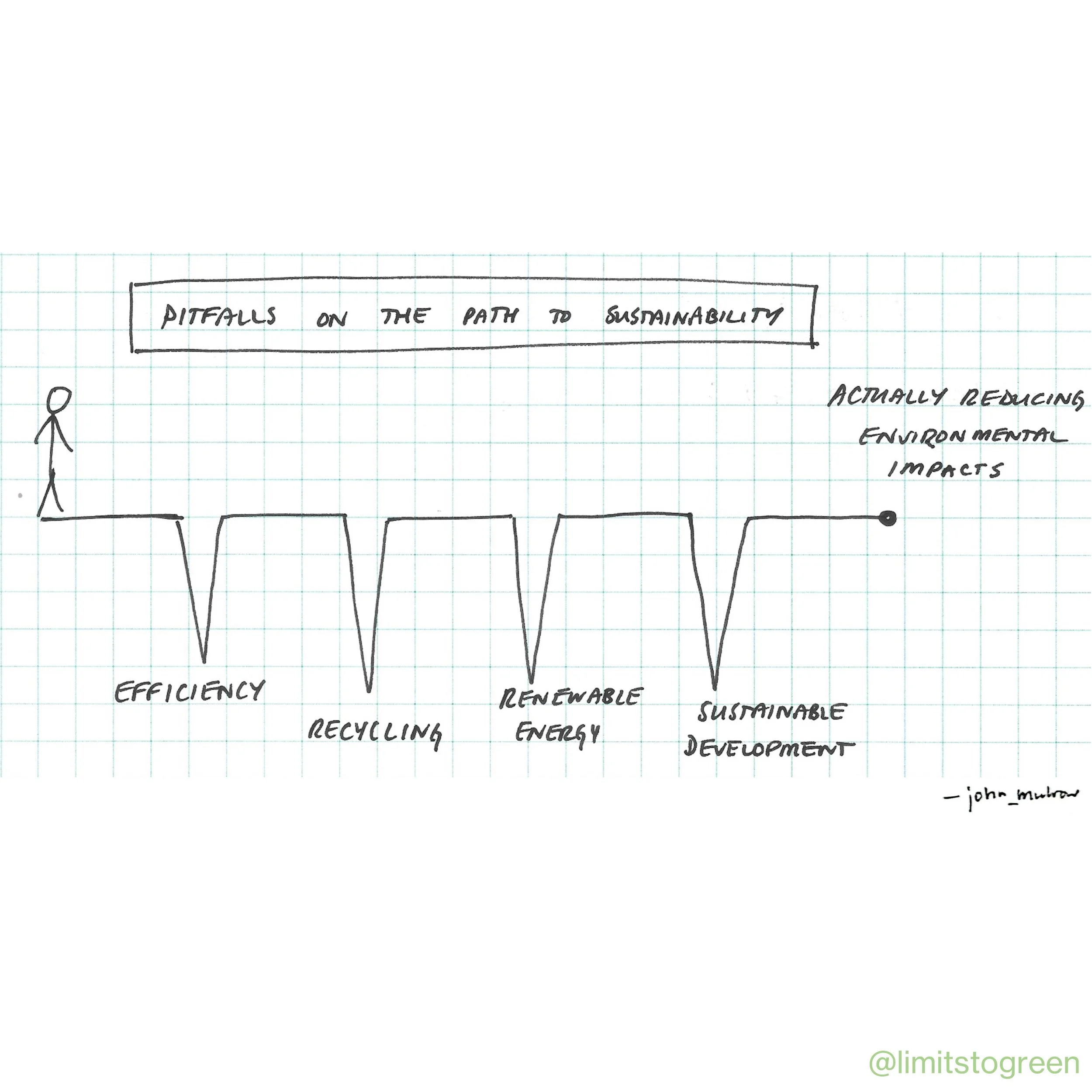 Hi, I’m John. I’ve been working in recycling, composting, renewable energy, and climate action for over twenty years. I originally sketched these comics as doodles in my lab notebook, reflecting on the major difference between intentions and outcomes of sustainability work.