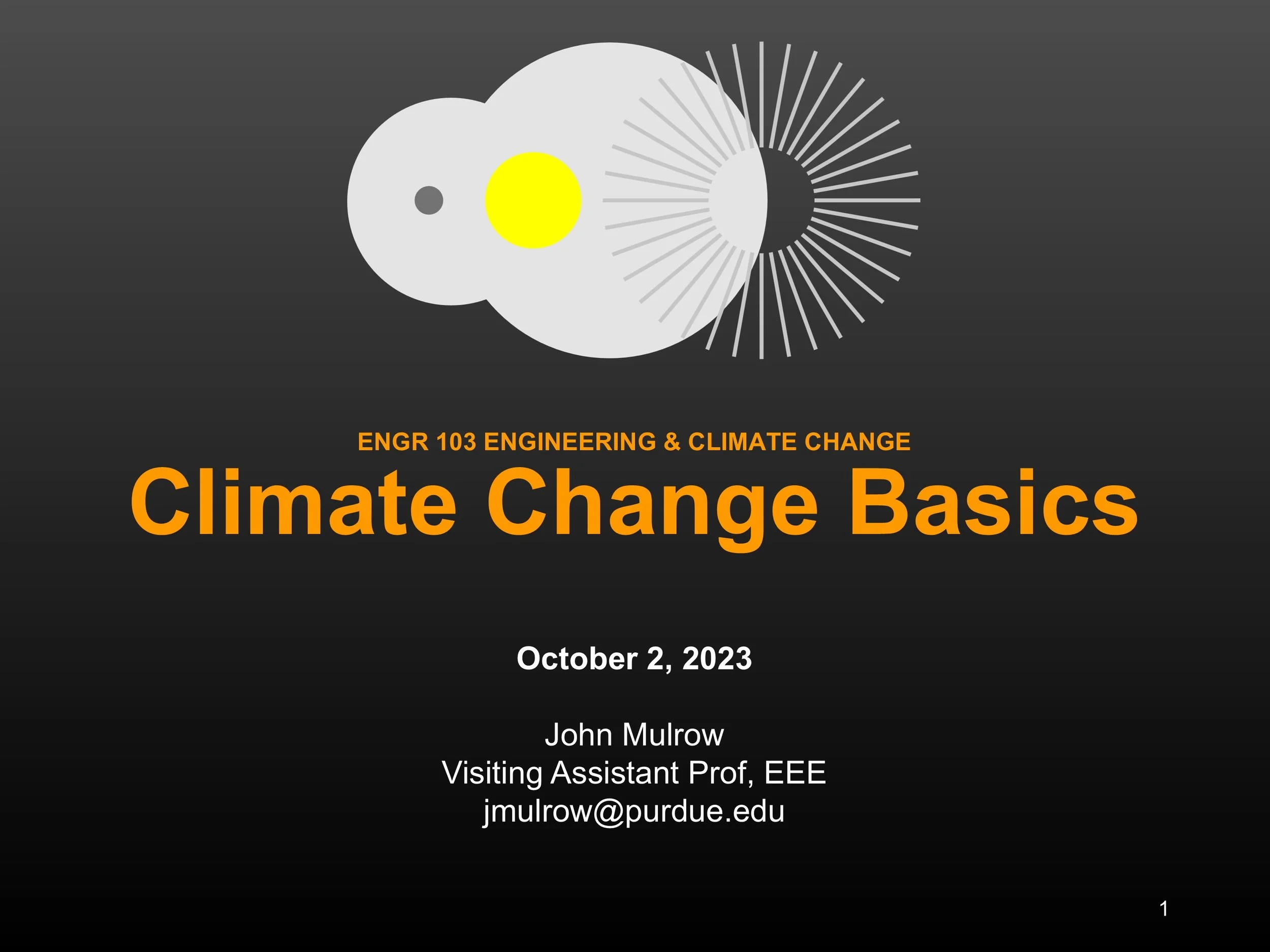 Engineering & Climate Change is a course for First Year Engineering students at Purdue. I teach the portions of the course on: